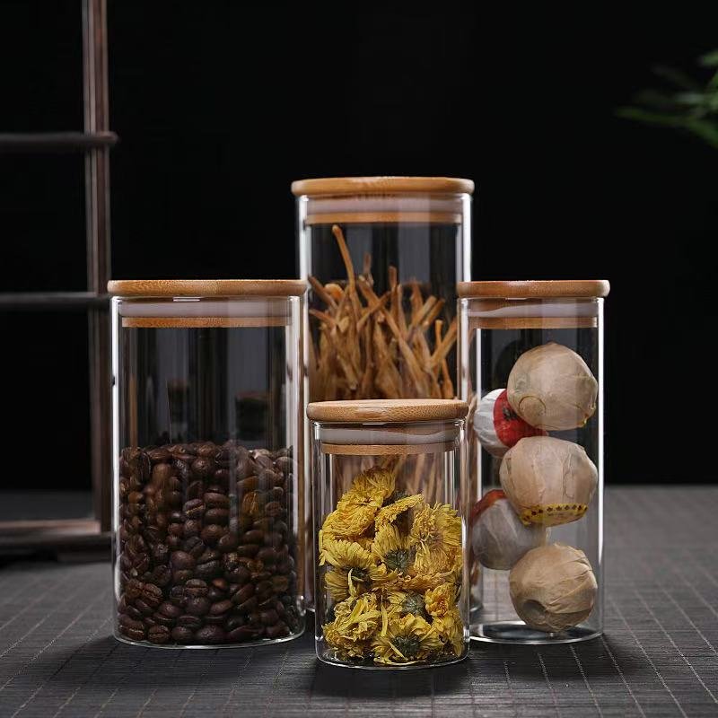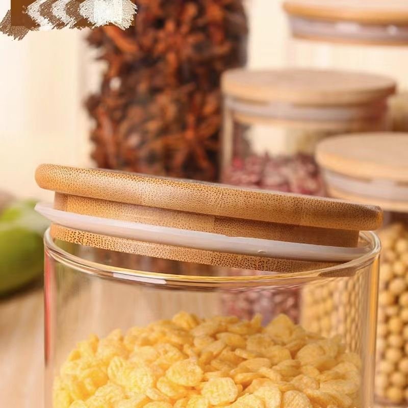 Frascos de Vidro Selado para Cozinha com Design Fofo, Herméticos, Ecológicos, Multifuncionais para Armazenamento de Alimentos e Organização de Temperos com tampas De Madeira De Bambu