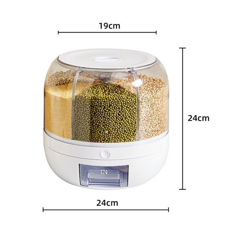 Dispensador 360 graus rotativo selado para grãos secos, recipiente à prova de umidade para cozinha.